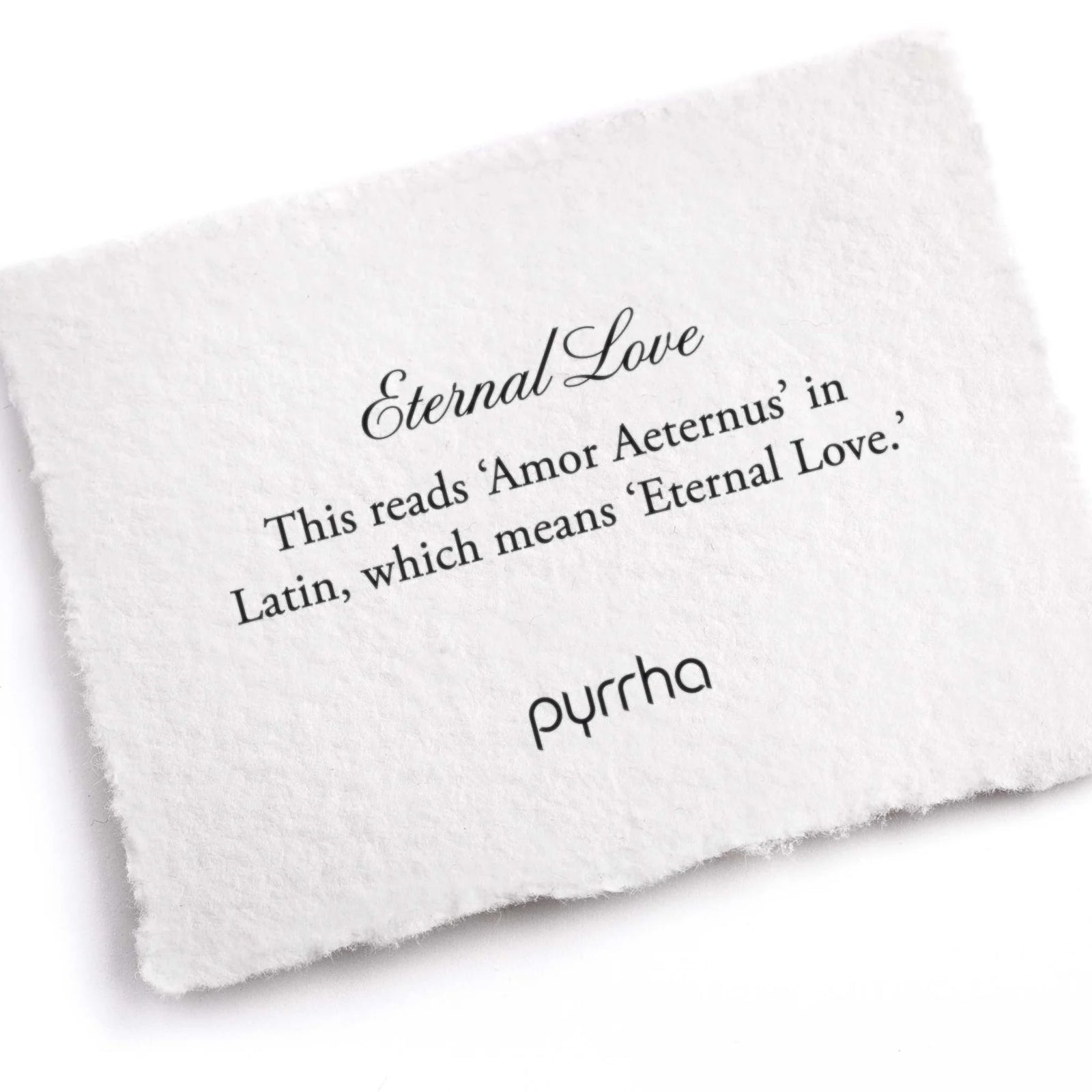This reads 'Amor Aeternus' in Latin, which means 'Eternal Love.'