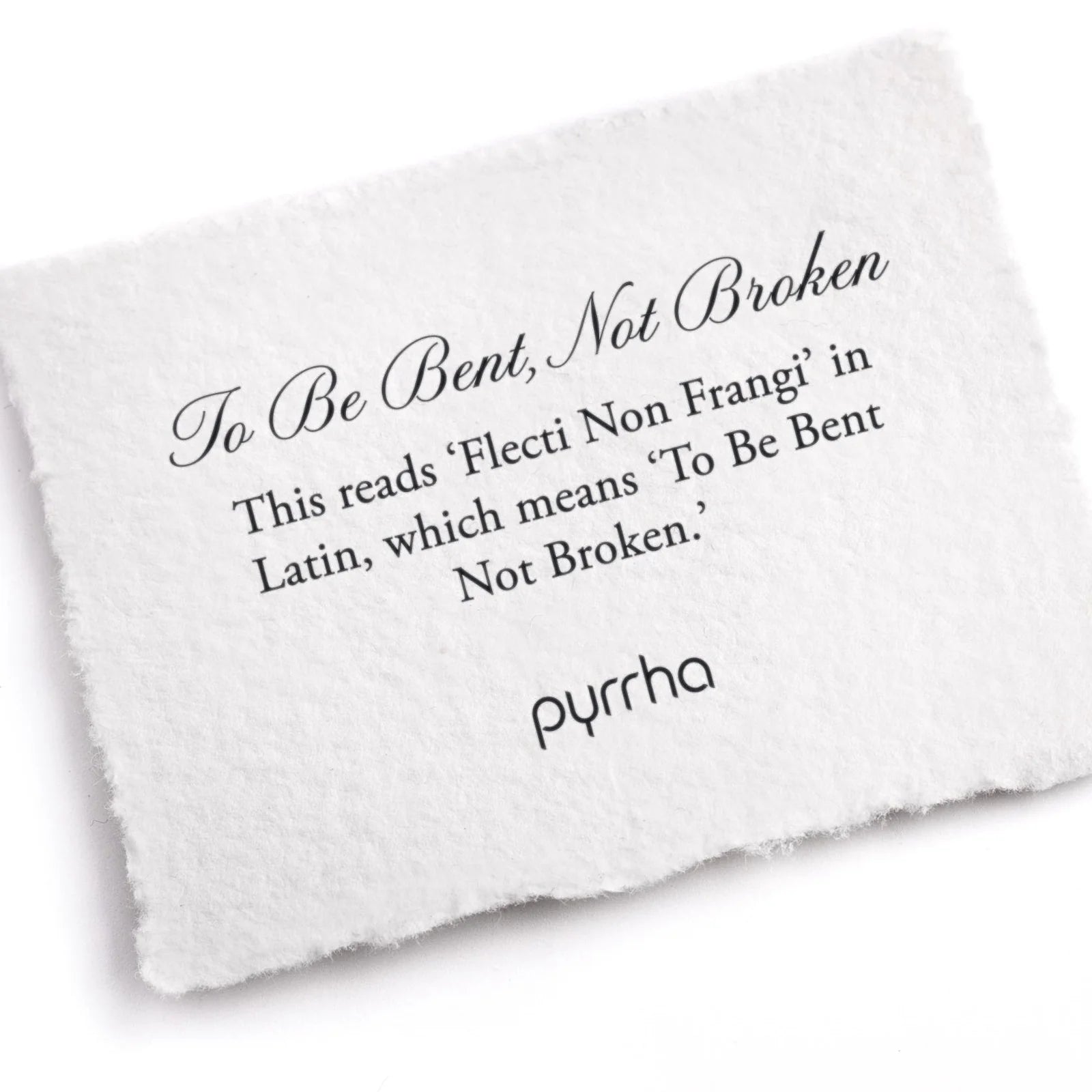 This reads 'Flecti Non Frangi' in Latin, which means 'To Be Bent Not Broken.'